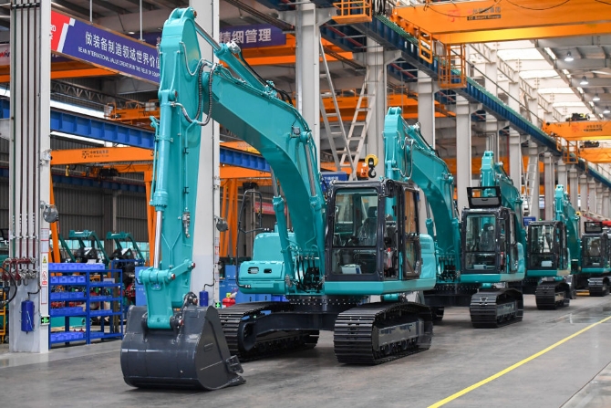 圖為位于湖南省長(zhǎng)沙經(jīng)開區(qū)的山河智能裝備股份有限公司中型挖機(jī)裝配車間。(圖源:新華社)