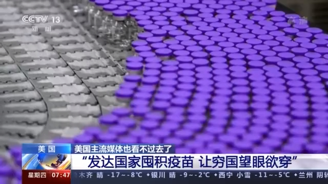 美國(guó)全國(guó)廣播公司在題為《“疫苗國(guó)家主義”——發(fā)達(dá)國(guó)家囤積疫苗 讓窮國(guó)只能“望眼欲穿”》的文章中,援引英國(guó)牛津大學(xué)衛(wèi)生經(jīng)濟(jì)學(xué)專家菲利普·克拉克的話說,與貧窮國(guó)家對(duì)新冠疫苗的“望眼欲穿”相比,以美國(guó)和英國(guó)為代表的西方發(fā)達(dá)國(guó)家為自己預(yù)留的疫苗劑量,數(shù)字驚人。