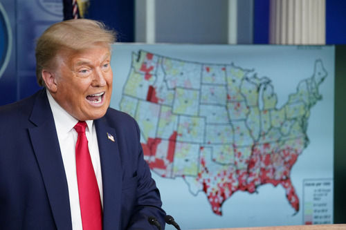 7月23日,美國(guó)總統(tǒng)特朗普在華盛頓白宮出席新冠疫情簡(jiǎn)報(bào)會(huì)。新華社/路透