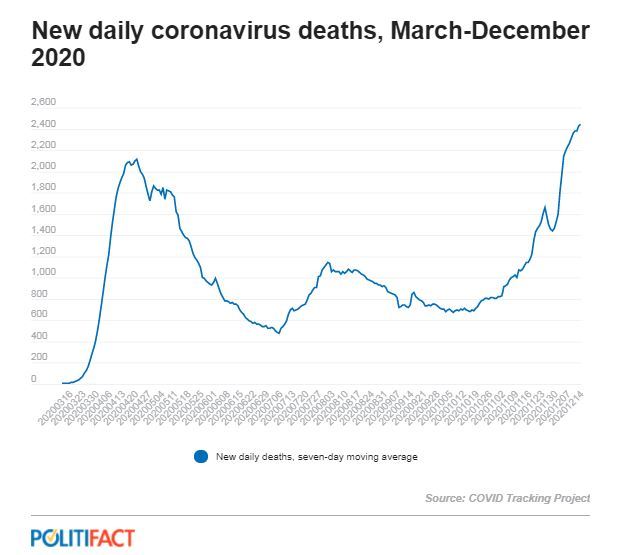 2020年3月至12月美國(guó)單日新增新冠死亡病例走勢(shì)圖。