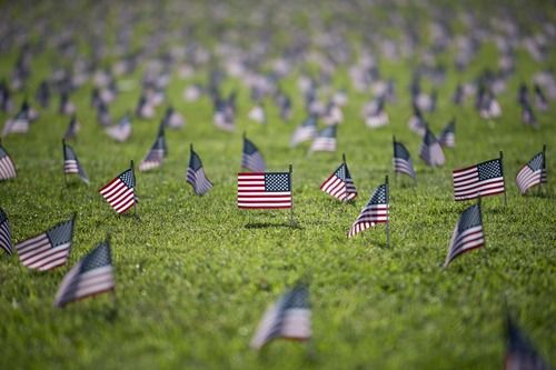 9月22日,2萬面美國國旗擺放在華盛頓紀(jì)念碑附近悼念20萬新冠逝者。新華社記者劉杰/攝