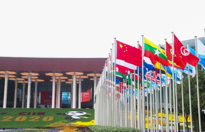 這是2020年11月2日拍攝的進博會場館——國家會展中心(上海)南廣場。(新華社記者丁汀 /攝)