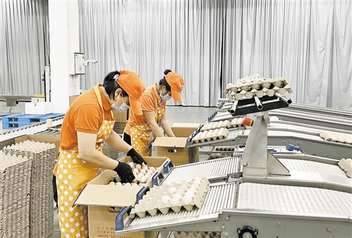 在沙縣小吃產(chǎn)業(yè)園內(nèi),福建樂子食品科技有限公司員工正在給篩選好的雞蛋裝箱。本報(bào)記者 薛志偉攝
