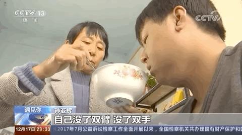 孫亞輝沒有雙臂,無法像正常人那樣用手滾動鼠標(biāo),更無法打字。他試著用左臂僅存的一段殘肢來點按鼠標(biāo),用牙齒咬著筷子,靠舌頭操縱方向去敲擊鍵盤。