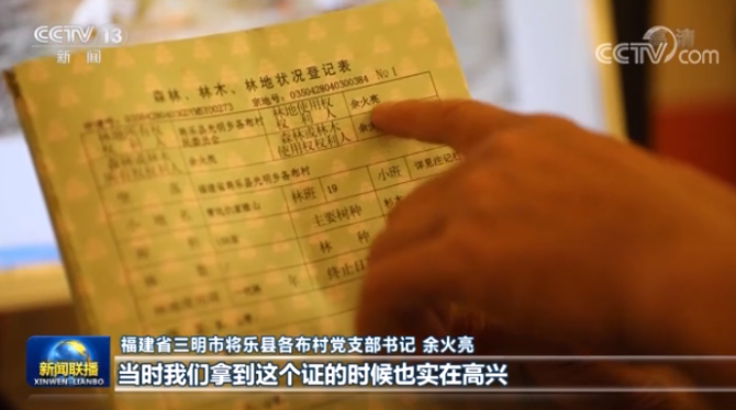 福建省三明市將樂縣各布村黨支部書記 余火亮:這就是我的名字,當(dāng)時我們拿到這個證也實在高興,心里就覺得很踏實,覺得這個山就是我自己的。像這張照片,當(dāng)時全部是個拋荒地,農(nóng)民就自主種這些苗木下去 。
