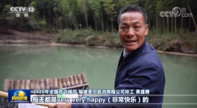 2020年全國勞動模范 福建泰寧旅游有限公司排工 黃盛騰:把我們美麗的山水和游客共享,我們的幸福感、獲得感也不斷增強。每天都是very very happy(非??鞓罚┑?。