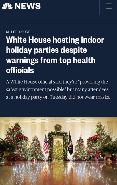 美國全國廣播公司報(bào)道,節(jié)日期間,白宮計(jì)劃舉辦多達(dá)20場室內(nèi)聚會