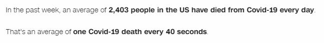 美國(guó)約翰斯·霍普金斯大學(xué)發(fā)布的最新統(tǒng)計(jì)數(shù)據(jù)顯示,美國(guó)新冠肺炎確診病例已超1700萬(wàn)例;死亡病例超過(guò)31萬(wàn)例,這一數(shù)字超過(guò)了第二次世界大戰(zhàn)期間美國(guó)在戰(zhàn)斗中喪生的人數(shù)。