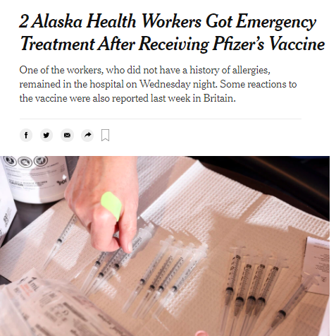 15日和16日,美國(guó)阿拉斯加州兩名醫(yī)護(hù)人員先后在接種美國(guó)輝瑞制藥有限公司與德國(guó)生物新技術(shù)公司聯(lián)合研發(fā)的新冠疫苗后嚴(yán)重過(guò)敏。接連報(bào)告過(guò)敏反應(yīng)也加重了人們的疑慮。