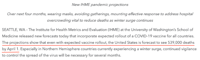 華盛頓大學(xué)健康指標(biāo)和評(píng)估研究所的建模分析顯示,即使用了疫苗,到明年4月1日,美國(guó)死亡總數(shù)也可能達(dá)到53萬(wàn)。