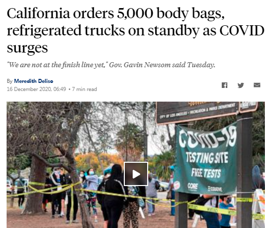 據(jù)美國(guó)廣播公司(ABC)報(bào)道,為應(yīng)對(duì)不斷上升的新冠肺炎死亡病例,美國(guó)加利福尼亞州增購(gòu)了裝尸袋和冰柜。