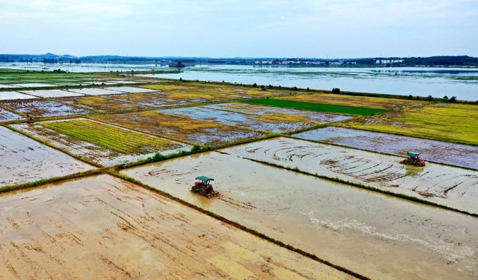 △2020年7月30日,江西省吉安市吉水縣醪橋鎮(zhèn)袁家村早稻收割后,村民們正忙著翻耕農(nóng)田,按時播種晚稻,確保今年糧食豐收。