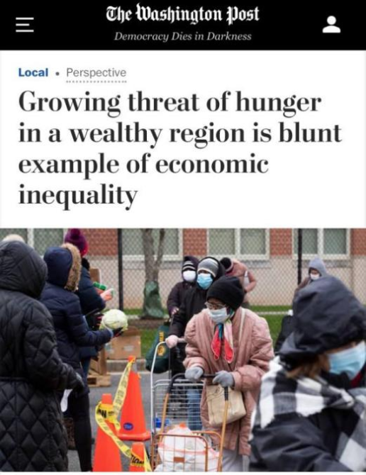 △《華盛頓郵報(bào)》稱,富裕地區(qū)饑餓人口不斷增加是貧富差距擴(kuò)大的直接表現(xiàn)