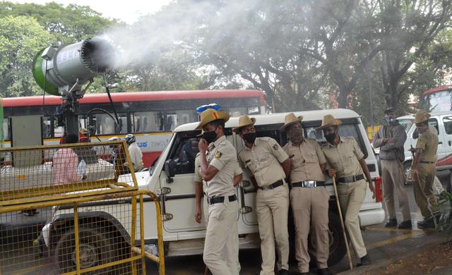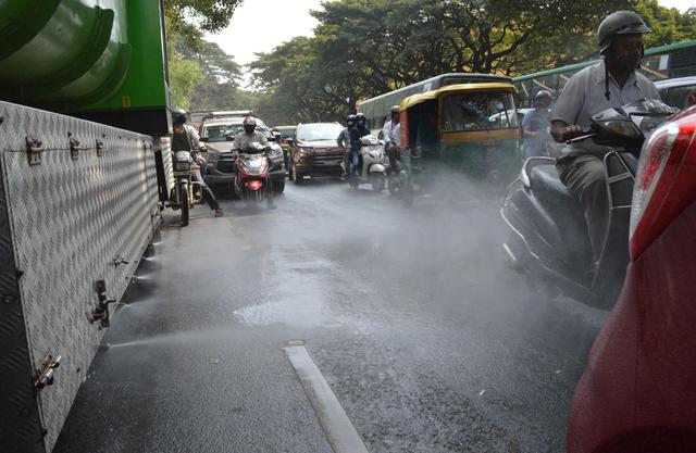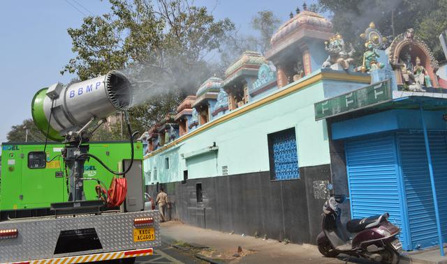 12月20日,消殺車輛在印度班加羅爾街頭作業(yè)?!?/p>