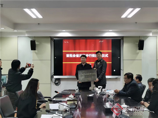 12月21日,昆明南屏步行街、昆明公園1903步行街、曲靖外灘文化旅游步行街、大理古城復(fù)興路步行街、麗江祥和商業(yè)廣場(chǎng)步行街,被云南省商務(wù)廳認(rèn)定為全省示范步行街(以下簡(jiǎn)稱示范步行街)。當(dāng)天,省商務(wù)廳舉行了授牌儀式。