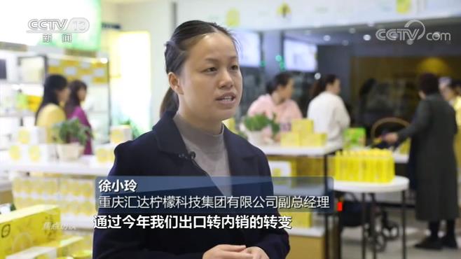 重慶匯達(dá)檸檬科技集團(tuán)有限公司副總經(jīng)理 徐小玲:2020年10月我們公司差不多70%都是以鮮果出口為主,通過(guò)今年出口轉(zhuǎn)內(nèi)銷(xiāo)的轉(zhuǎn)變,截至目前產(chǎn)值14.7億元,其中有接近9億元,差不多整個(gè)占比的60%,是來(lái)源于深加工銷(xiāo)售產(chǎn)值。