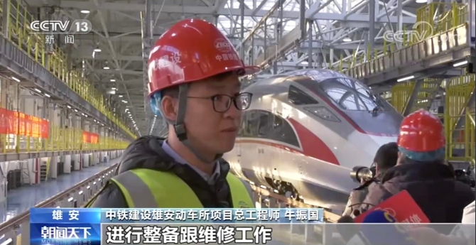 中鐵建設(shè)雄安動車所項目總工程師 牛振國:“雄安動車運用所在9月底建設(shè)完成,從10月下旬開始我們就開始對試運行的列車進(jìn)行整備跟維修工作。 ”