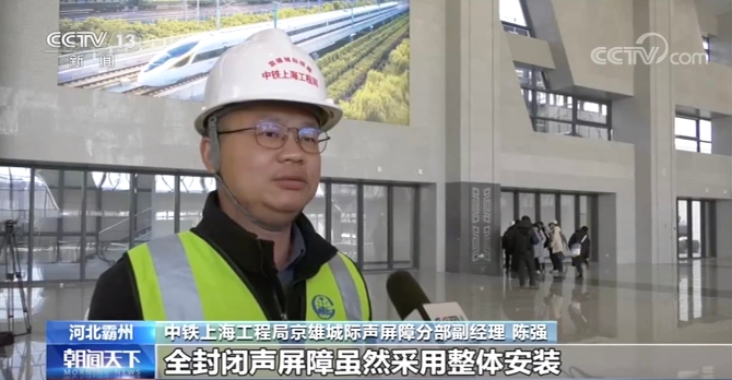 京雄城際鐵路在河北霸州段,橫穿北落店村,為減少拆遷成本,同時不影響村民生活,設(shè)計者首創(chuàng)了時速350公里的全封閉聲屏障,將列車經(jīng)過時的環(huán)境噪音降到20分貝以下。