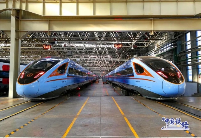 CR300BF型復(fù)興號(hào)動(dòng)車組在外觀上選用淺藍(lán)色,因此得名“藍(lán)暖男” ,憑借獨(dú)特形象在“復(fù)興號(hào)家族”中成功出圈。
