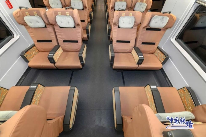 “藍(lán)暖男”不是“藍(lán)胖子”哦,其實(shí)很苗條的!它總定員613人,包含1節(jié)一等座車廂和7節(jié)二等座車廂,相比同類動(dòng)車組定員增加37人,但減重約4.5% 。