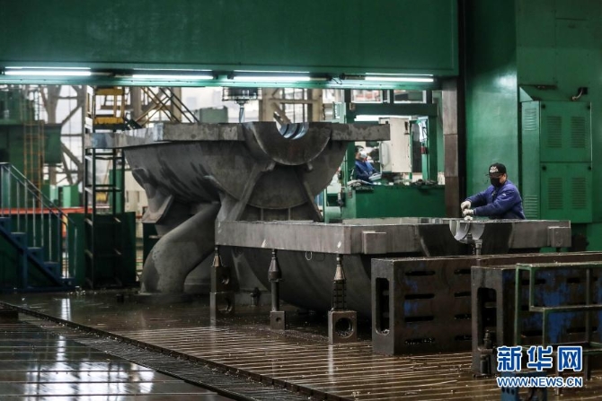 2月10日,沈陽鼓風(fēng)機(jī)集團(tuán)股份有限公司的工人在車間生產(chǎn)。新華社記者 潘昱龍 攝