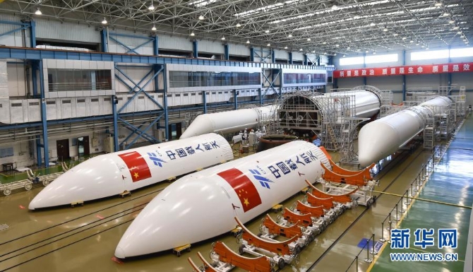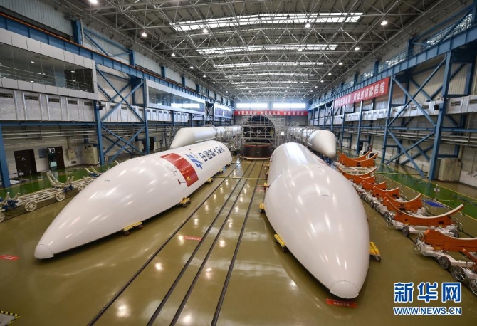 中國航天科技集團一院天津大運載基地長征五號運載火箭總裝車間(資料照片)。新華社發(fā)(孫凡越 攝)