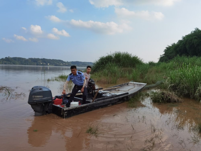 為了不影響視線,方便巡護(hù),船艙沒裝頂棚。冰冷刺骨的江風(fēng),裹挾著空中的雨絲和艙底的細(xì)沙,一股腦撲在隊(duì)員們的臉上、眼里,很快又順著臉龐滴落了下來(lái)。他們的衣服早已被打濕。