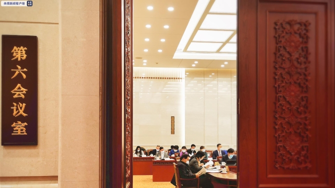 △全國人大常委會組成人員分為6組對各項議案和報告進行審議討論