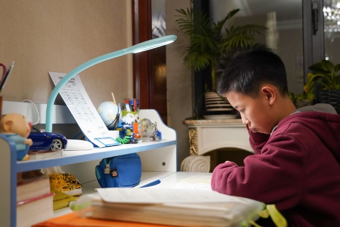 12月21日,蔡昊霖在家中學(xué)習(xí)。