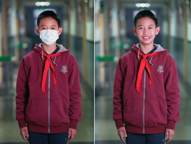12月21日,在北京四中廣外校區(qū)拍攝的初一四班學(xué)生蔡昊霖肖像(拼版照片)。
