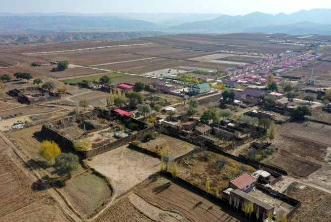 ↑這是10月28日拍攝的黃土塬上的賀家塬村,近處是老村落,遠(yuǎn)處是新村(無(wú)人機(jī)照片)。