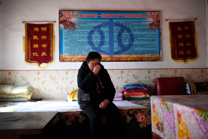 ↑在賀家塬村老村部,丁海燕講述起駐村6年來(lái)的辛酸經(jīng)歷,不禁落淚(10月28日攝)。