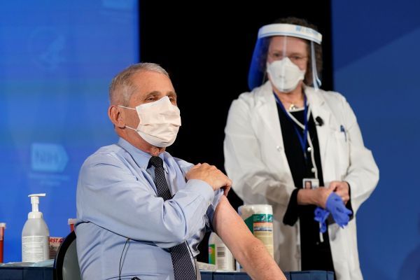 福奇樂觀表示,如果疫苗順利分發(fā),明年夏天美國就可能實現(xiàn)“群體免疫”。圖為福奇22日接種他的第一劑新冠疫苗。(路透社)