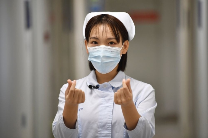 一身護士裝出現(xiàn)在鏡頭前,張碩依然戴著口罩,卻遮擋不住眉宇間散發(fā)出的青春朝氣。