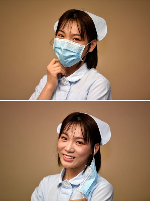 “總穿著防護服,我都好久不化妝了?!备糁谡?,張碩笑起來眼睛瞇成了月牙。