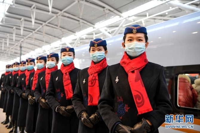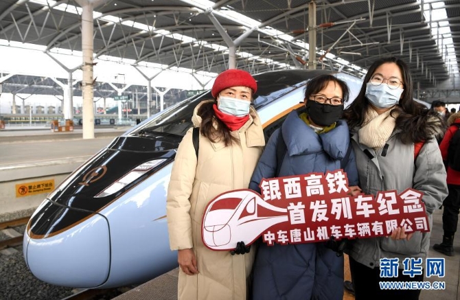 12月26日,工作人員在銀川站舉行的首發(fā)儀式上歡迎乘客乘車。新華社記者 馮開華 攝