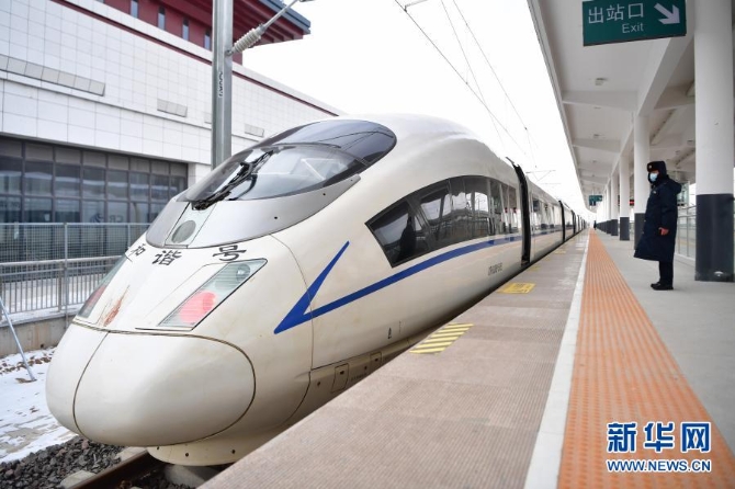 12月26日,由銀川開往西安北的D4385次列車駛過吳忠站。新華社記者 馮開華 攝