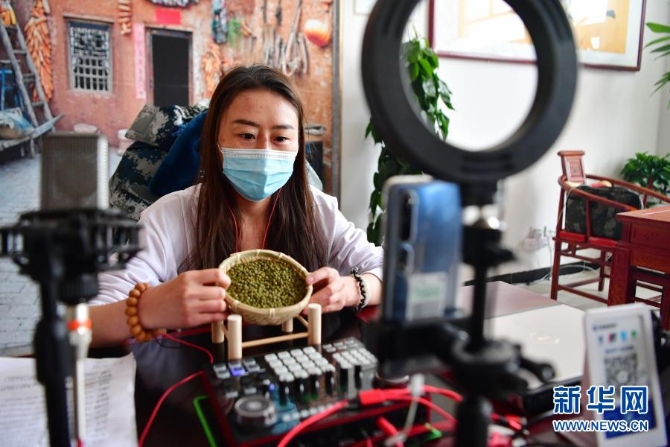 12月13日,甘肅省慶陽市環(huán)縣大學(xué)生孟靜通過電商平臺介紹家鄉(xiāng)的土特產(chǎn)。新華社記者 陳斌 攝