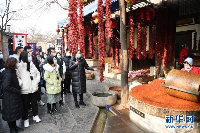 12月16日,游客在陜西省咸陽市禮泉縣袁家村景區(qū)游覽。新華社記者 張博文 攝