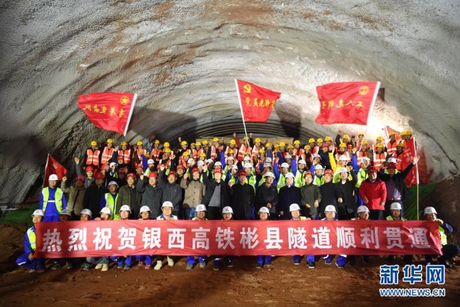 由中鐵十一局承建的銀西高鐵彬縣隧道順利貫通(2019年12月28日攝)。新華社記者 張博文 攝