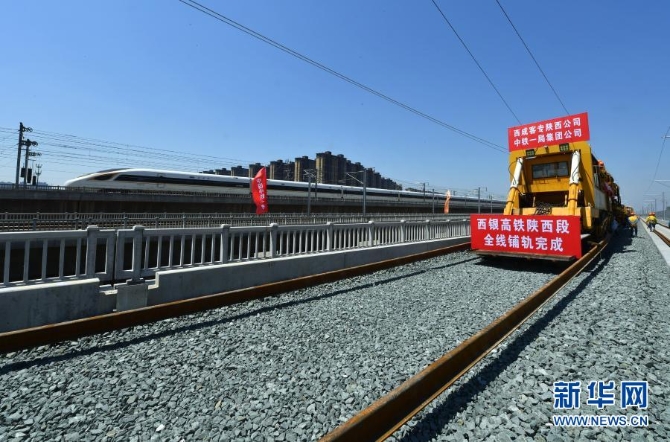 6月18日,由中鐵一局新運公司承建的銀西高鐵陜西段鋪軌工程順利完工。新華社記者 張博文 攝