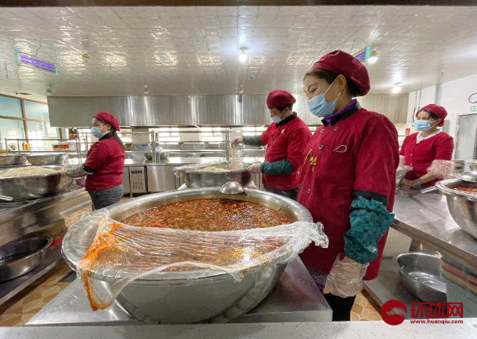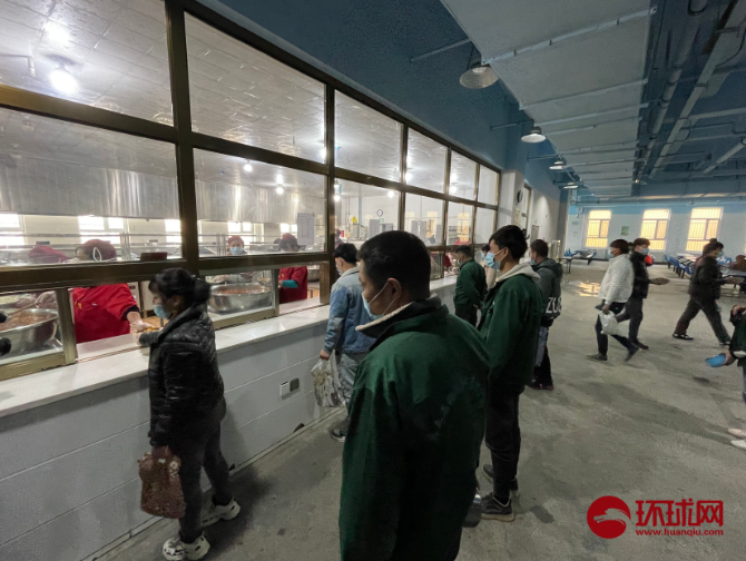 庫(kù)車(chē)石榴籽服飾公司食堂排隊(duì)打飯的員工(范凌志/攝)