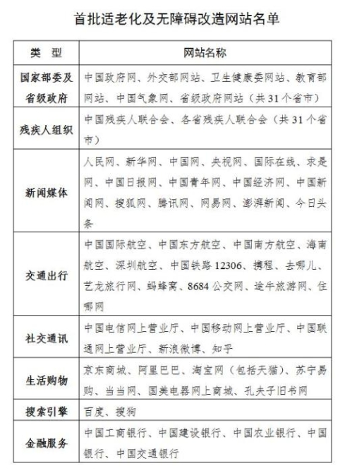 開展互聯(lián)網(wǎng)主要行業(yè)網(wǎng)站適老化及無障礙改造。緊密結(jié)合老年人、殘疾人等群體的實際需求,對《工業(yè)和信息化部 中國殘疾人聯(lián)合會關(guān)于推進信息無障礙的指導(dǎo)意見》(工信部聯(lián)信管〔2020〕146號)中提出的與老年人、殘疾人等群體工作、生活密切相關(guān)的公共服務(wù)類網(wǎng)站開展適老化及無障礙改造。首批優(yōu)先推動國家相關(guān)部委及省級人民政府、殘疾人組織、新聞媒體、交通出行、金融服務(wù)、社交通訊、生活購物、搜索引擎等8大類、共115家網(wǎng)站進行改造(網(wǎng)站名單見附件1)。中國互聯(lián)網(wǎng)協(xié)會協(xié)助基礎(chǔ)電信企業(yè)及網(wǎng)站接入服務(wù)商加快互聯(lián)網(wǎng)無障礙服務(wù)體系建設(shè),持續(xù)推動互聯(lián)網(wǎng)信息無障礙環(huán)境建設(shè)健康發(fā)展。