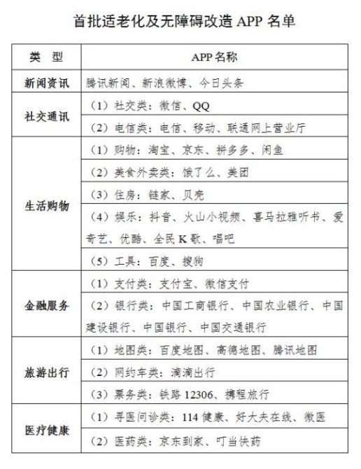 開展老年人、殘疾人常用移動互聯(lián)網(wǎng)應(yīng)用(APP)的適老化及無障礙改造。立足老年人、殘疾人的實際生活體驗,豐富滿足其需求的移動互聯(lián)網(wǎng)應(yīng)用(APP)種類和功能,對《工業(yè)和信息化部 中國殘疾人聯(lián)合會關(guān)于推進信息無障礙的指導(dǎo)意見》(工信部聯(lián)信管〔2020〕146號)中列出的移動互聯(lián)網(wǎng)應(yīng)用十大領(lǐng)域、注冊用戶數(shù)超過5000萬人、同類產(chǎn)品中市場份額排名前5名的APP進行適老化及無障礙改造。首批優(yōu)先推動新聞資訊、社交通訊、生活購物、金融服務(wù)、旅游出行、醫(yī)療健康等6大類、共43個APP進行適老化及無障礙改造(APP名單見附件2)。中國信息通信研究院協(xié)助各互聯(lián)網(wǎng)企業(yè),在開發(fā)設(shè)計移動互聯(lián)網(wǎng)應(yīng)用(APP)的過程中落實信息無障礙有關(guān)標(biāo)準(zhǔn)的要求,并將無障礙優(yōu)化納入產(chǎn)品及服務(wù)的日常維護流程。