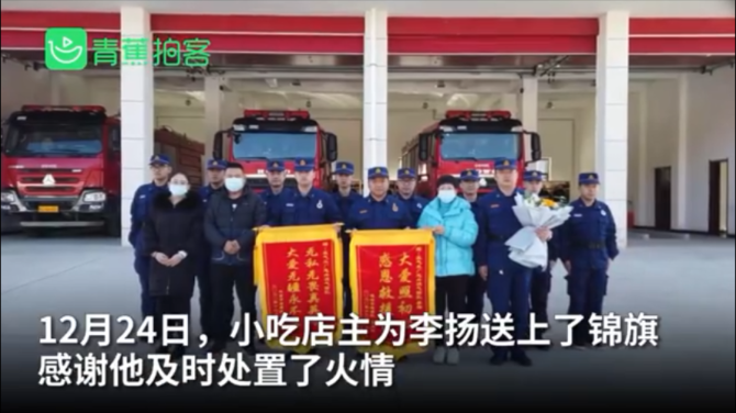 24日,小吃店店主專門(mén)為李揚(yáng)送上錦旗