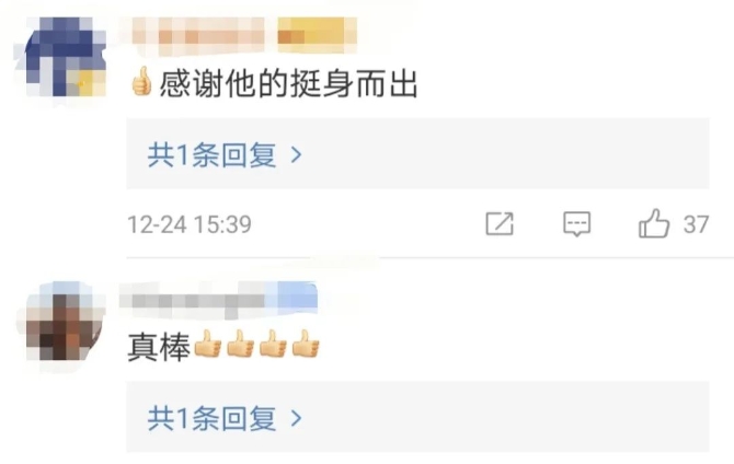“感謝他的挺身而出”