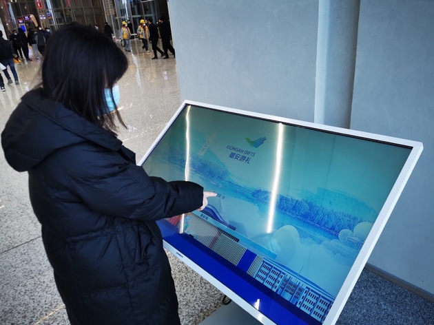 圖為工作人員操作演示“雄安游禮”XR城市名片