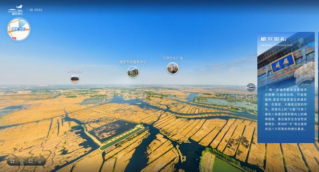 “雄安游禮”XR城市名片基于數(shù)字化技術(shù)的強(qiáng)通用性、強(qiáng)交互性、高集智性和高增值性等特征,融合AR、VR、XR等技術(shù),對(duì)城市資源要素進(jìn)行生態(tài)化、系統(tǒng)化、數(shù)字化的孿生再造,將雄安市民服務(wù)中心、雄縣碼頭、白洋淀荷花大觀園、漫生活等實(shí)體景區(qū)進(jìn)行數(shù)字化融合,通過線上裸眼VR觀摩,為游客提供沉浸式體驗(yàn)感受“云”上雄安的魅力。