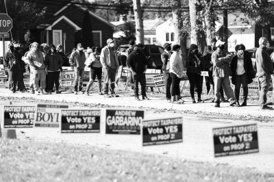 10月31日,在美國紐約州長島的一個投票站外,參加提前投票的選民排起長隊。新華社發(fā)
