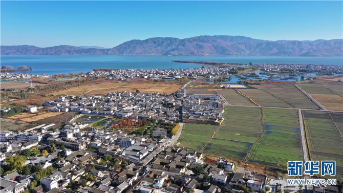 航拍洱海畔的喜洲古鎮(zhèn)(12月14日攝)。新華網(wǎng) 趙普凡 攝